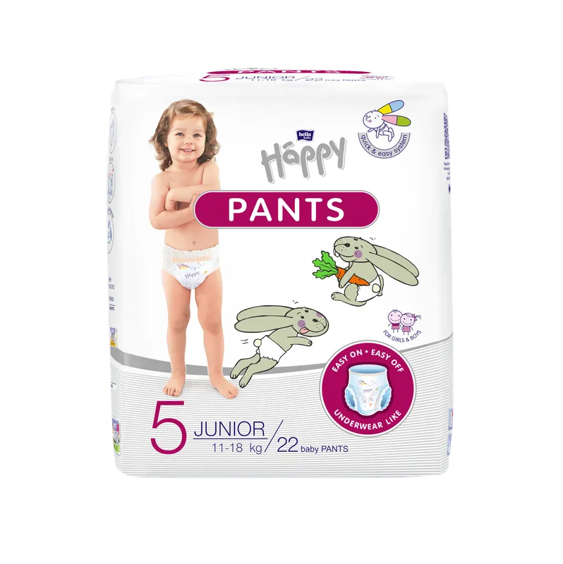 Bella Baby Happy Pants Junior sú navrhnuté s dôrazom na maximálne pohodlie a bezpečnosť dieťaťa, ktoré sa učí samostatnosti. Systém Quick & Easy zabezpečuje rýchlu a jednoduchú výmenu plienky, vďaka čomu sa dieťa môže bez zbytočného zdržania vrátiť k ďalšiemu objavovaniu sveta.
